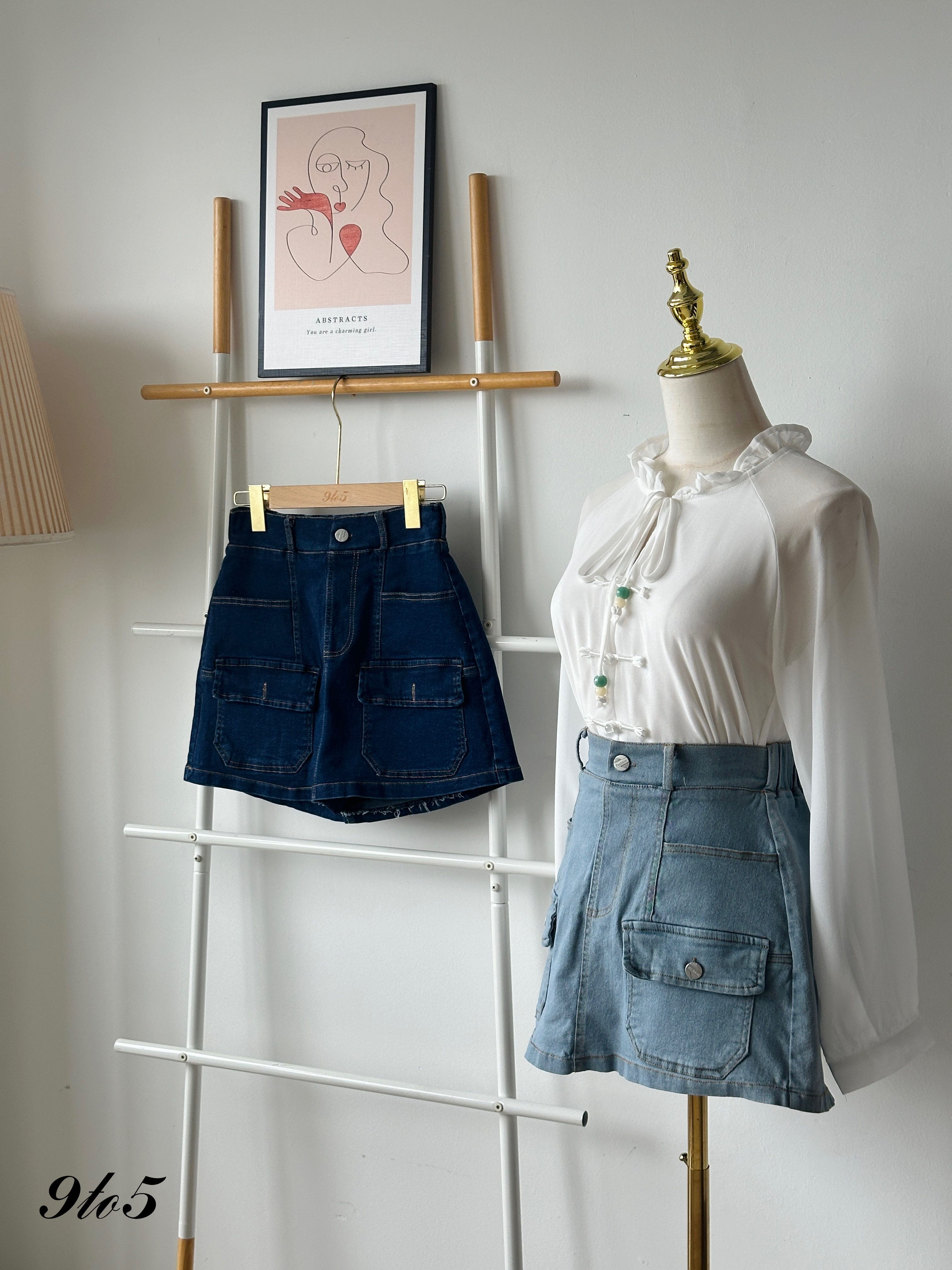 S1743 Denim Short Skirt - Dark Blue & Light Blue