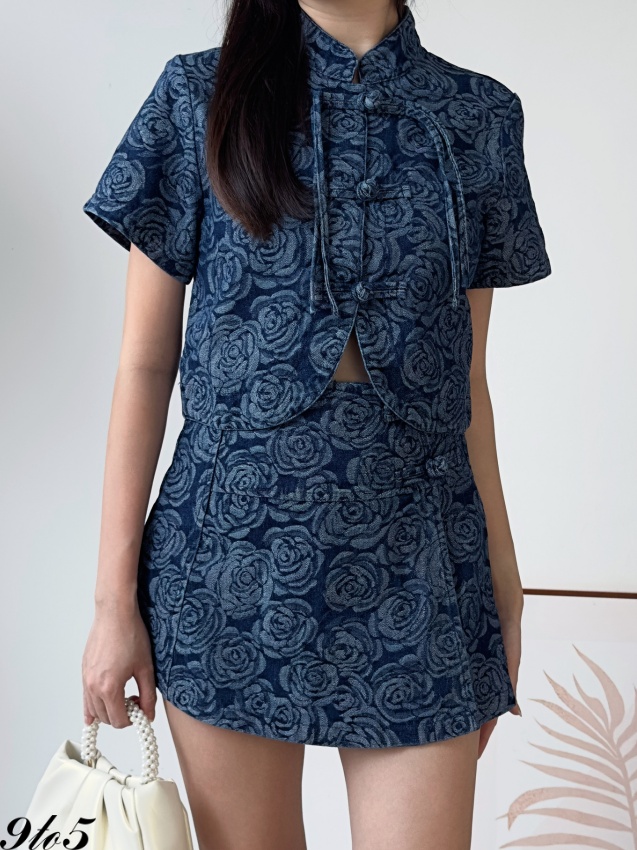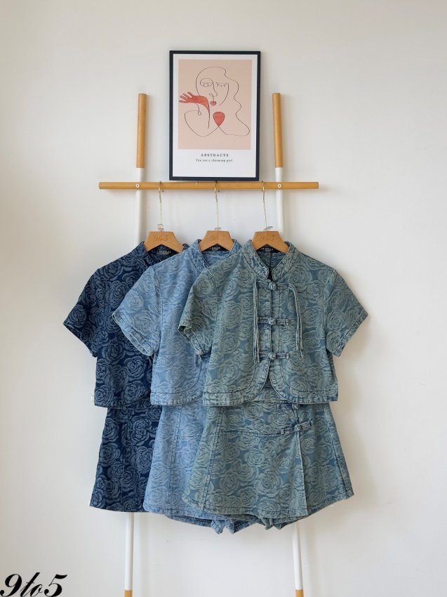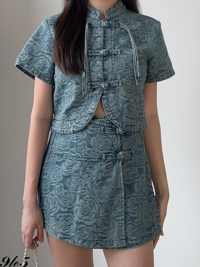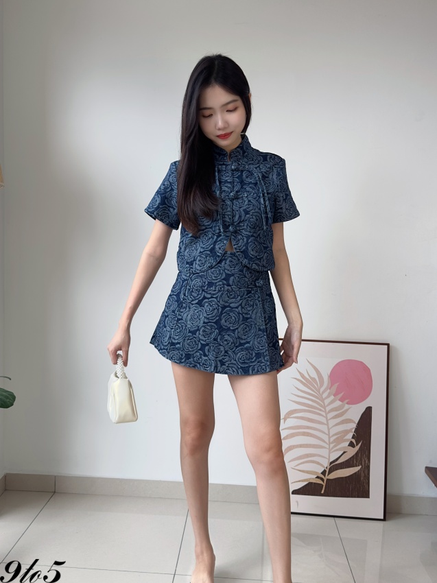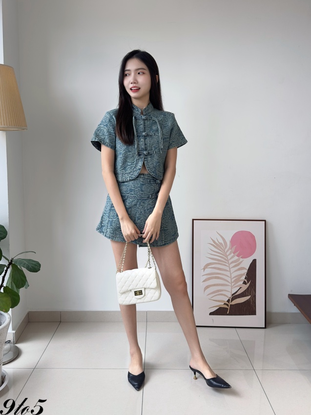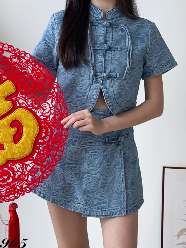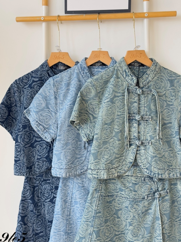 D2248 Denim Cheongsam Matching Set - 3 Colors