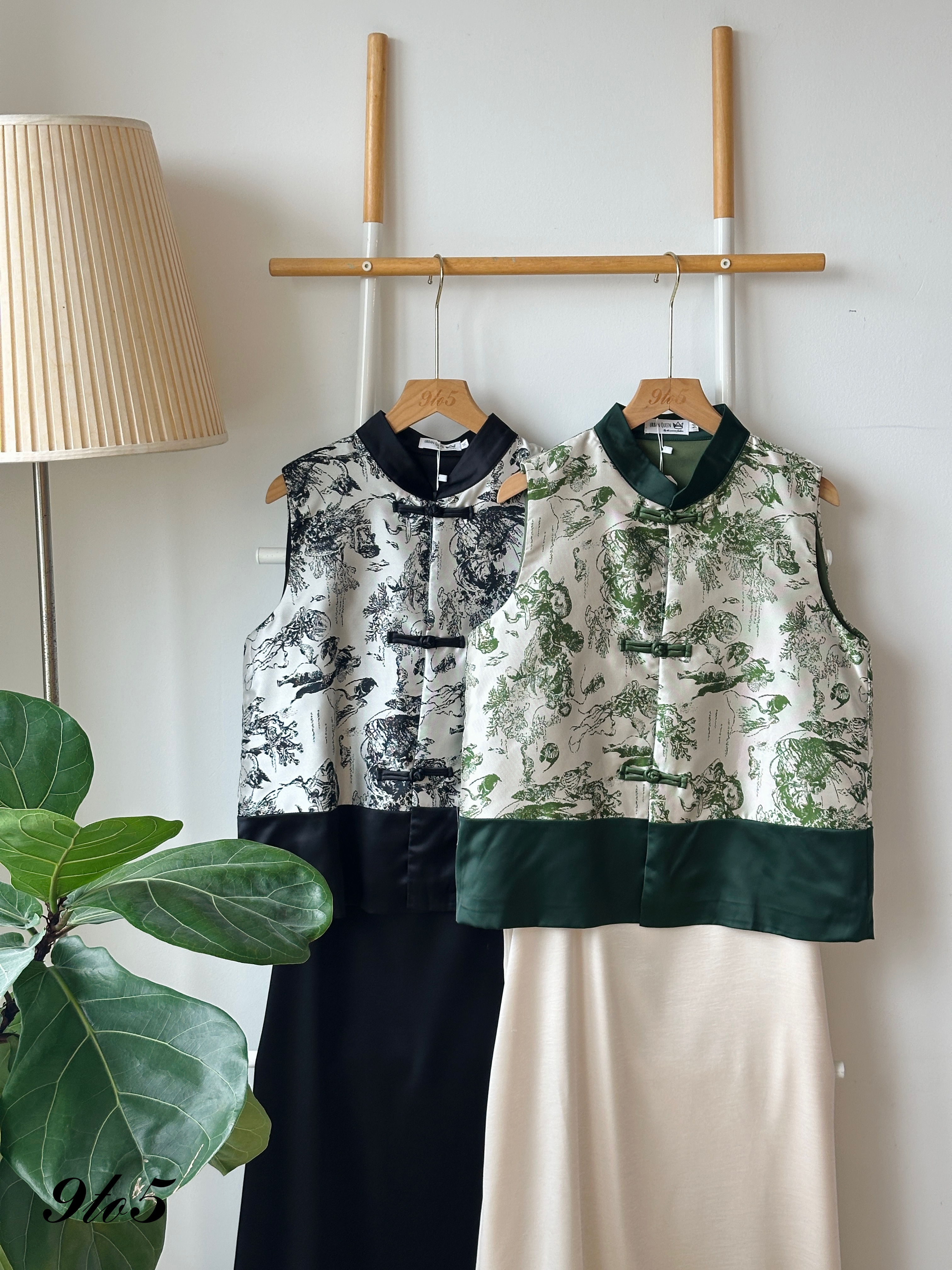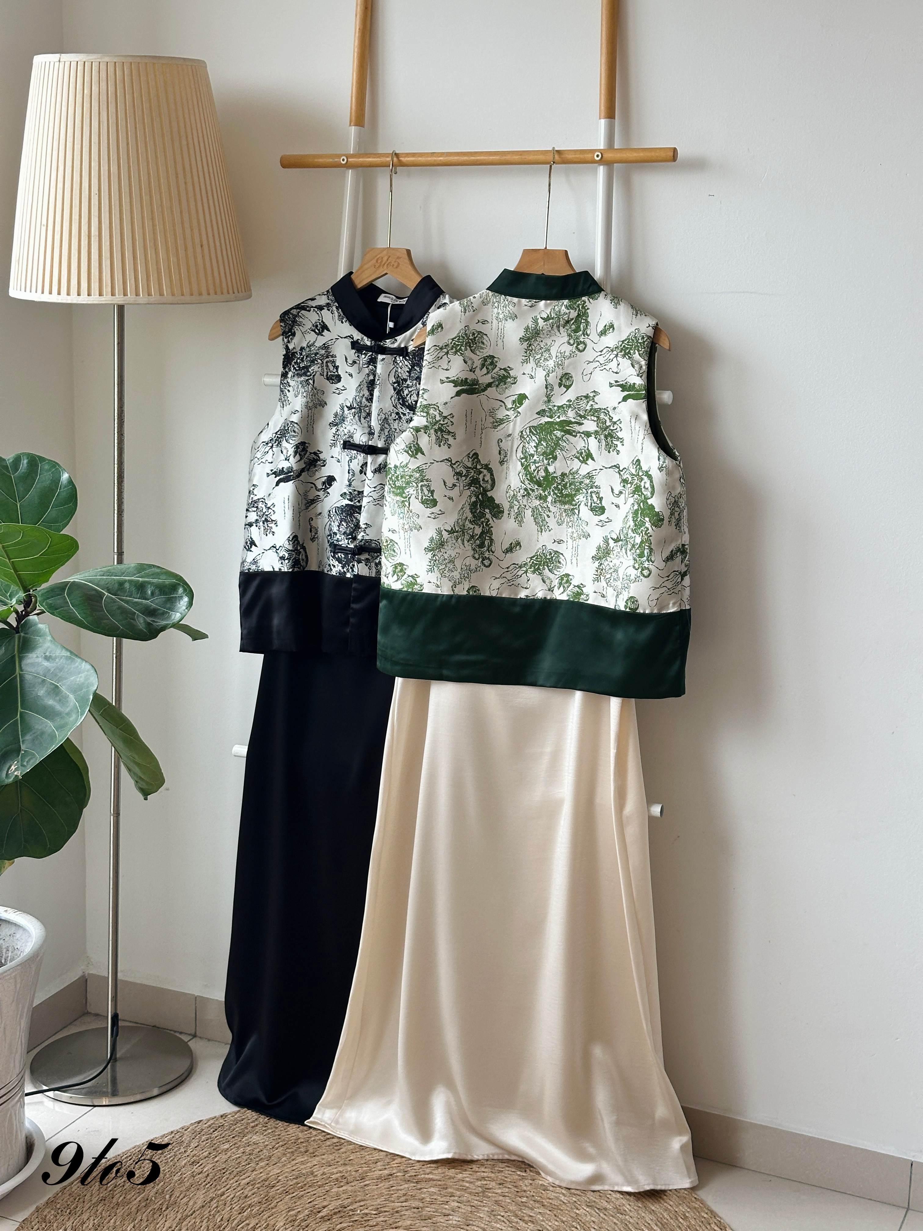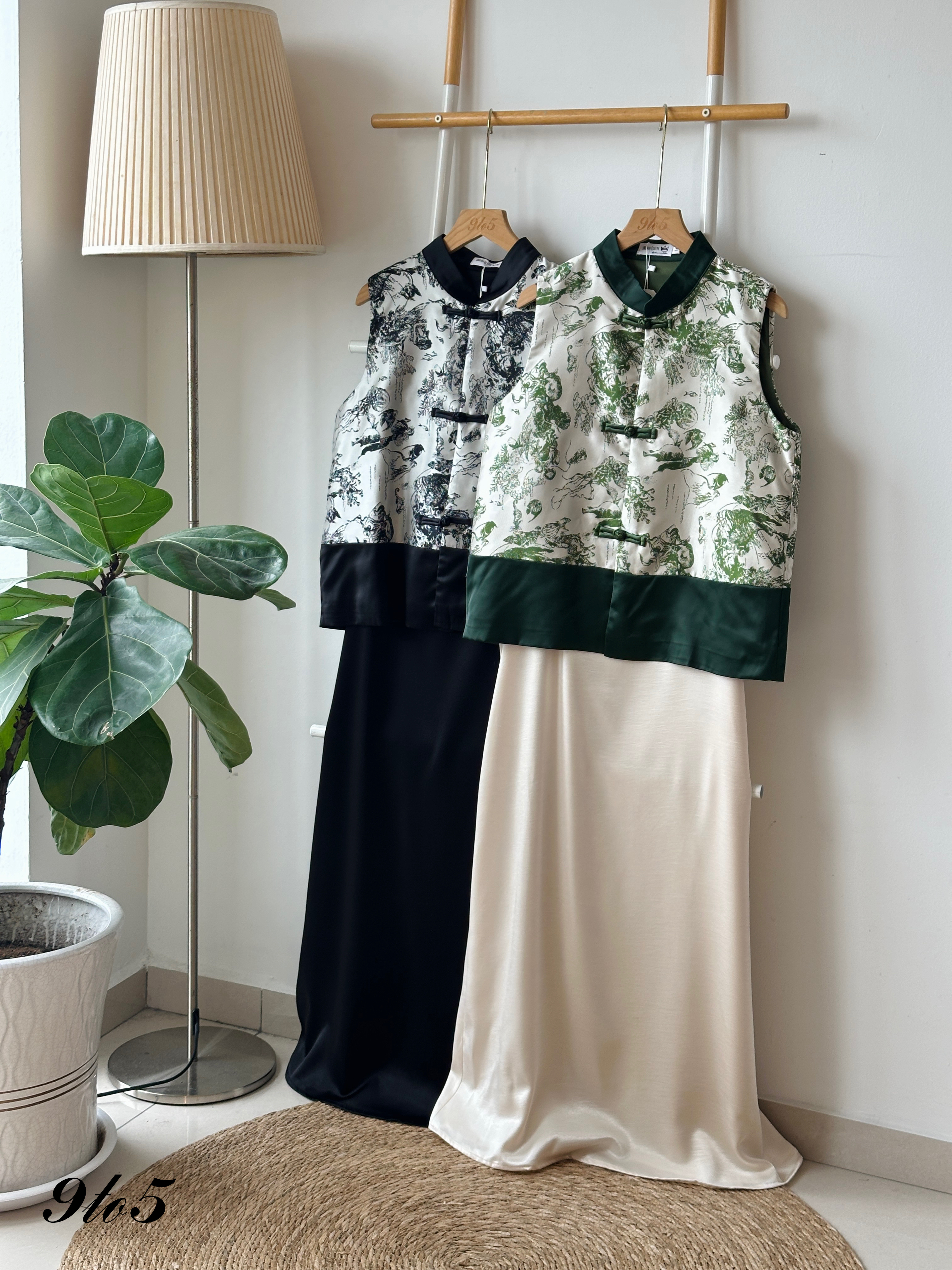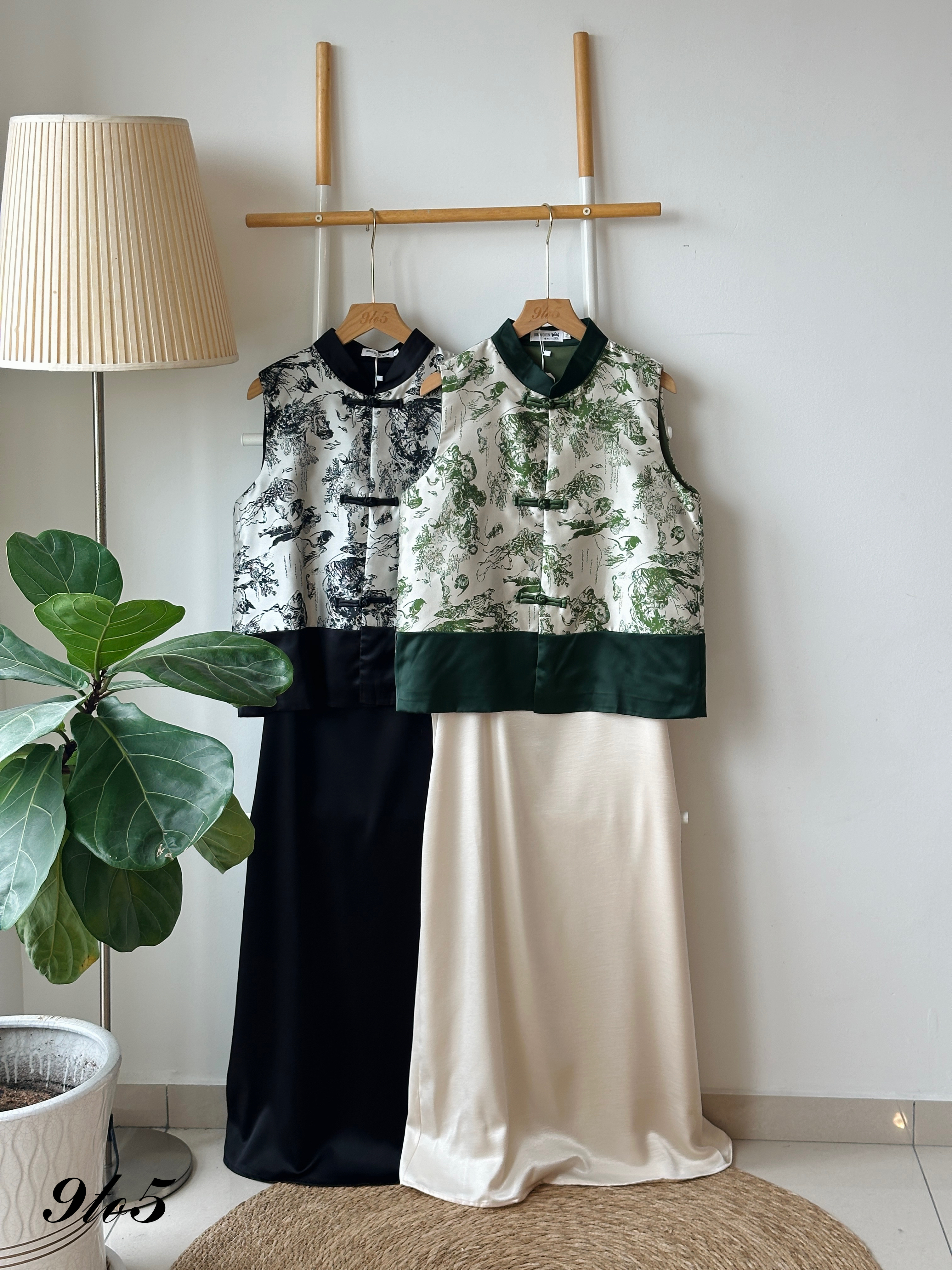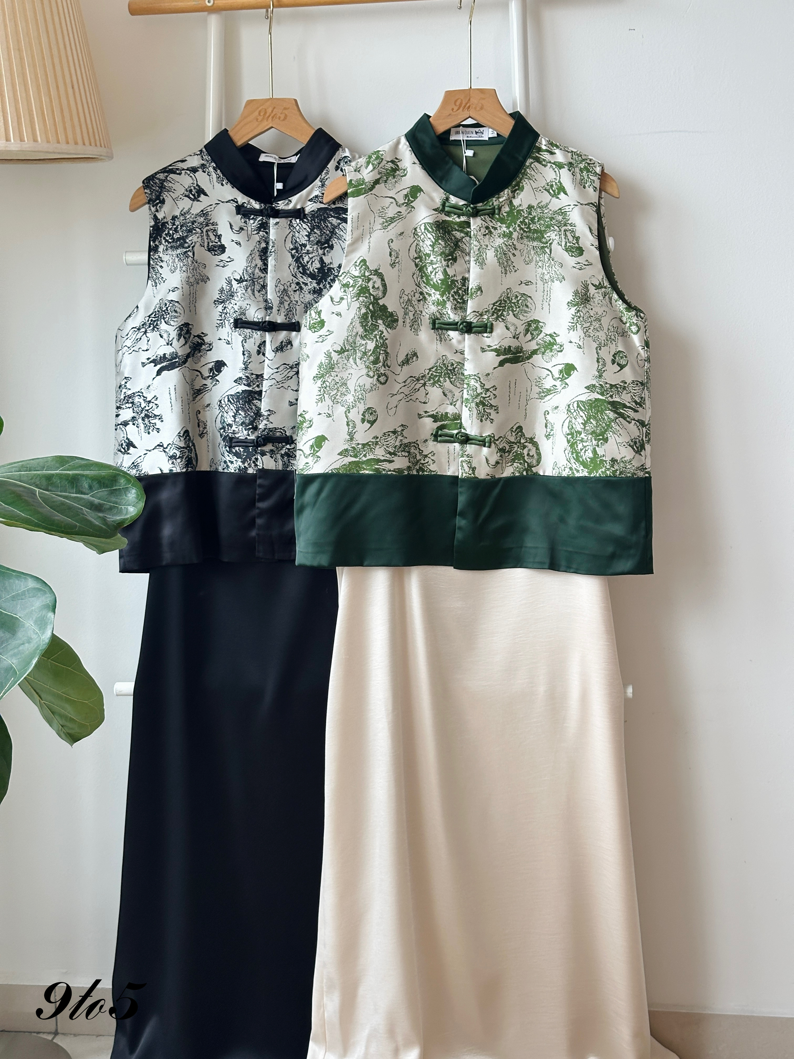 D2284 Cheongsam Vest with Dress Matching Set - Black & Green