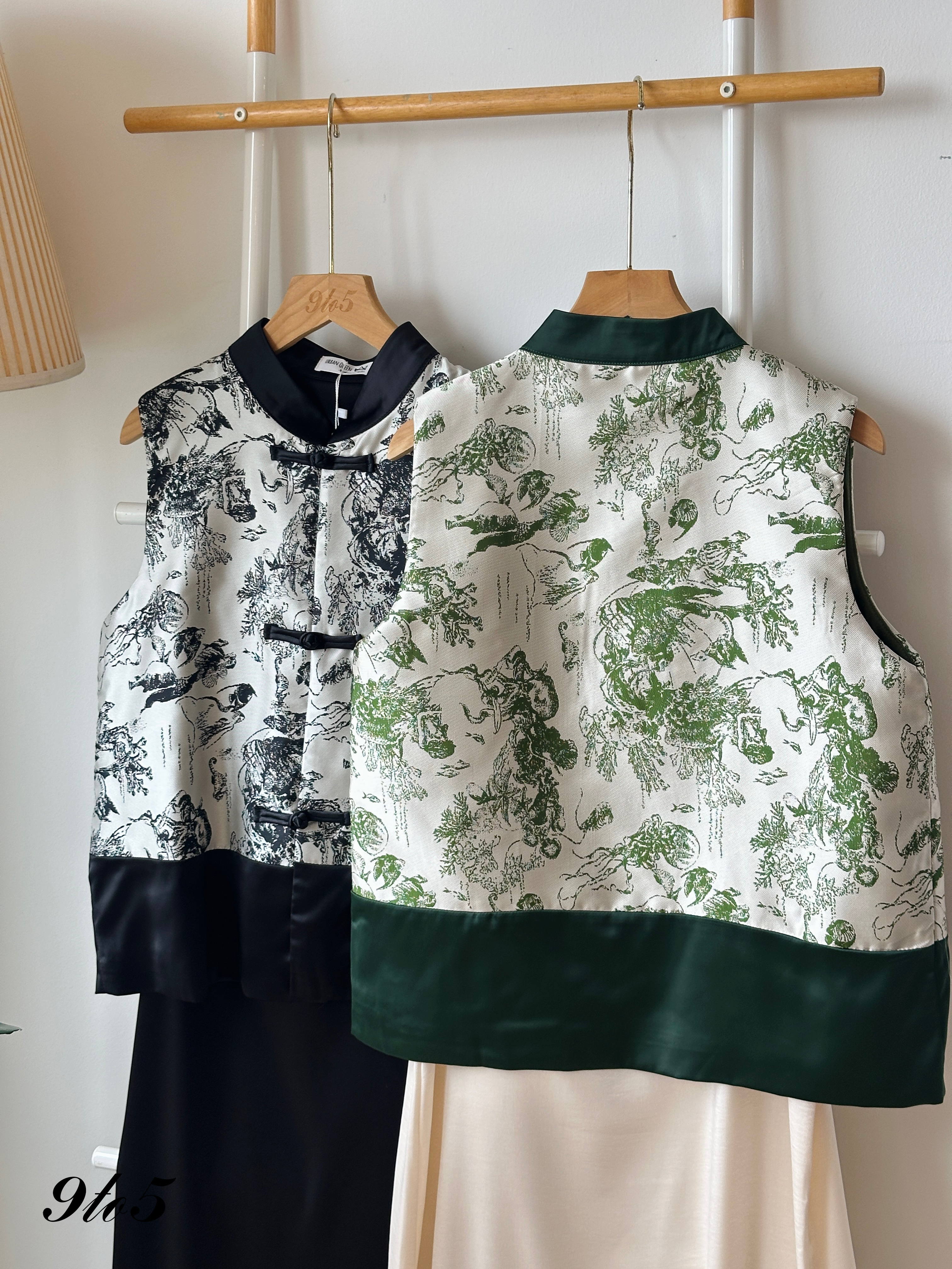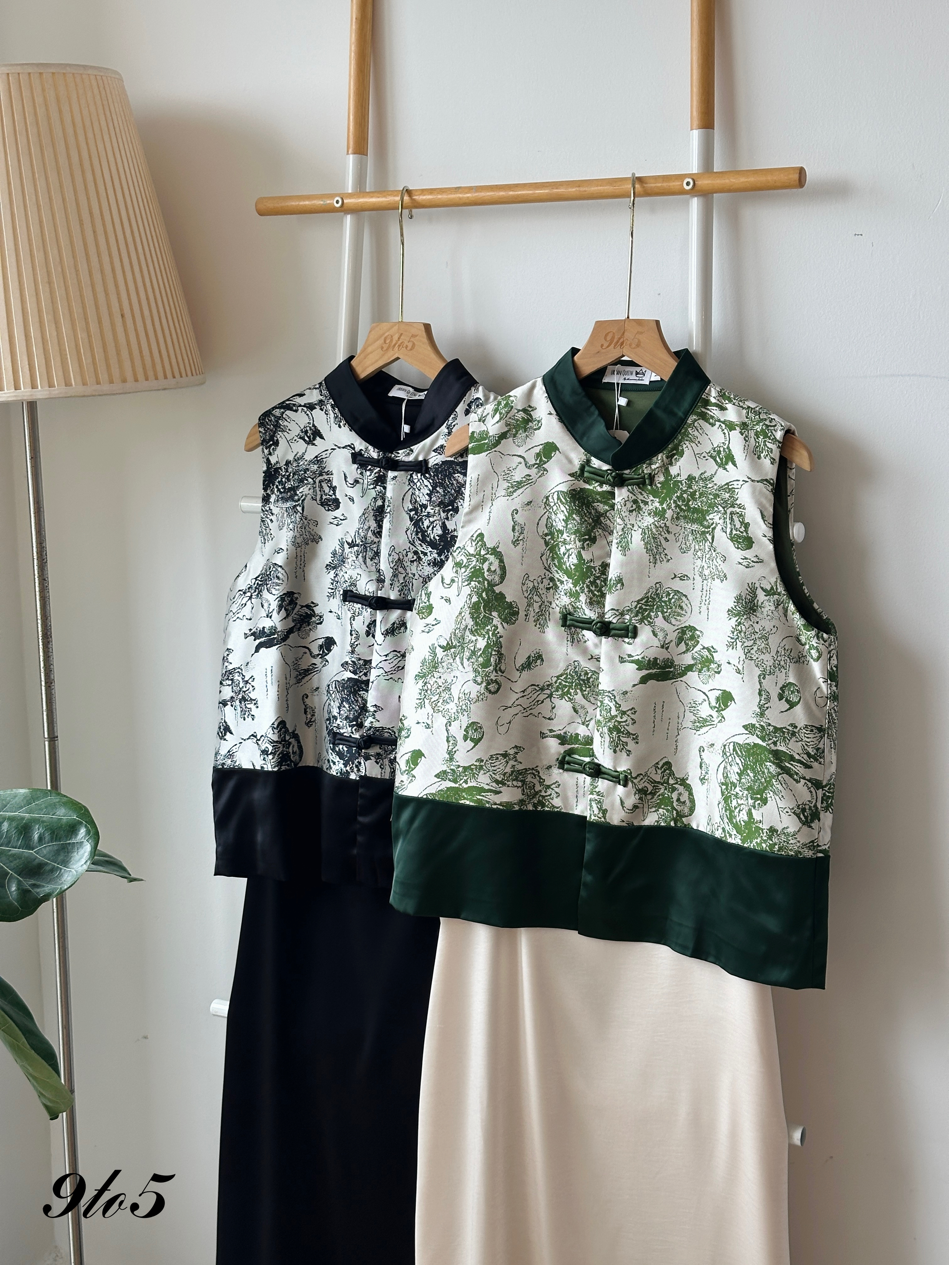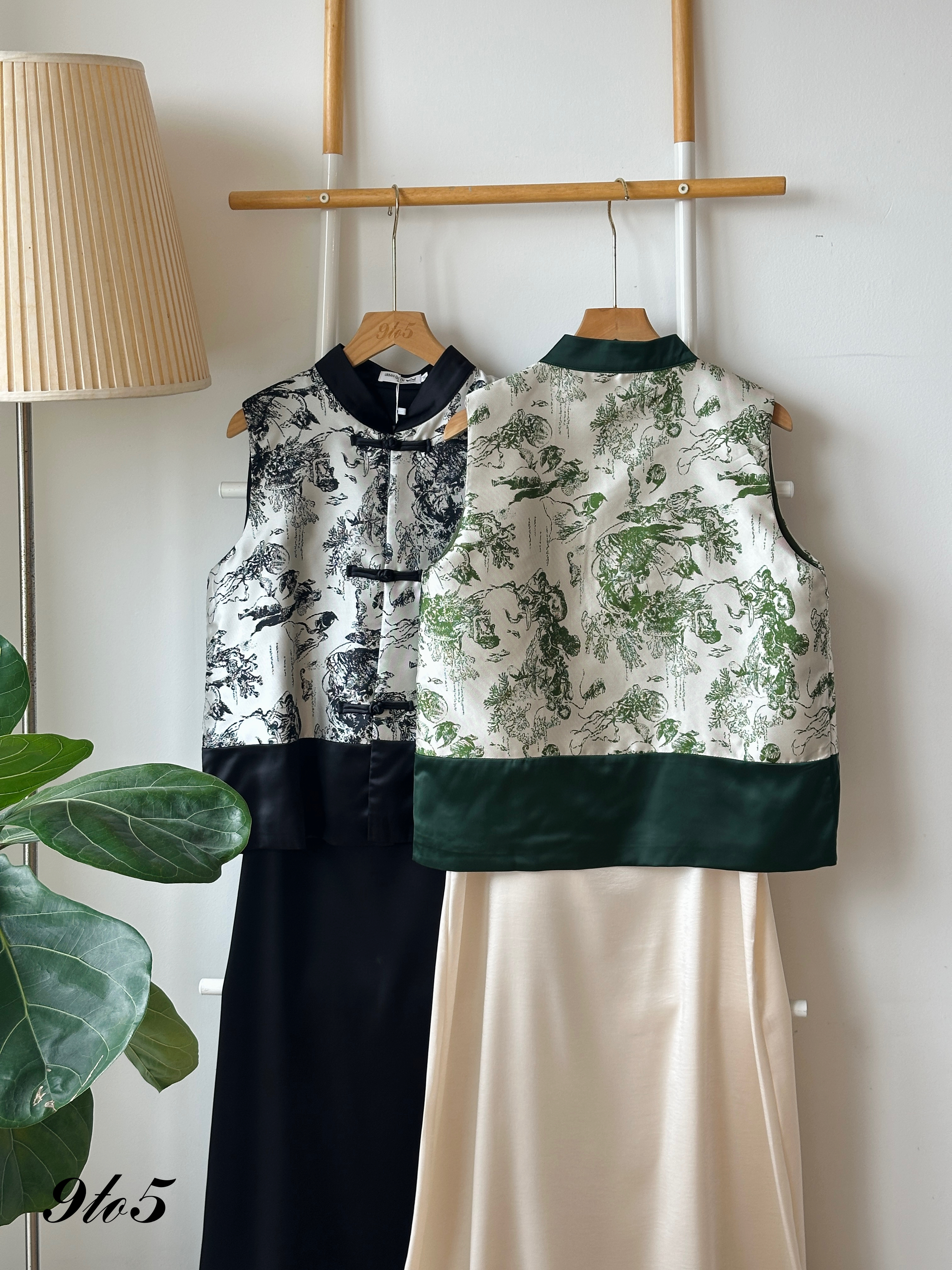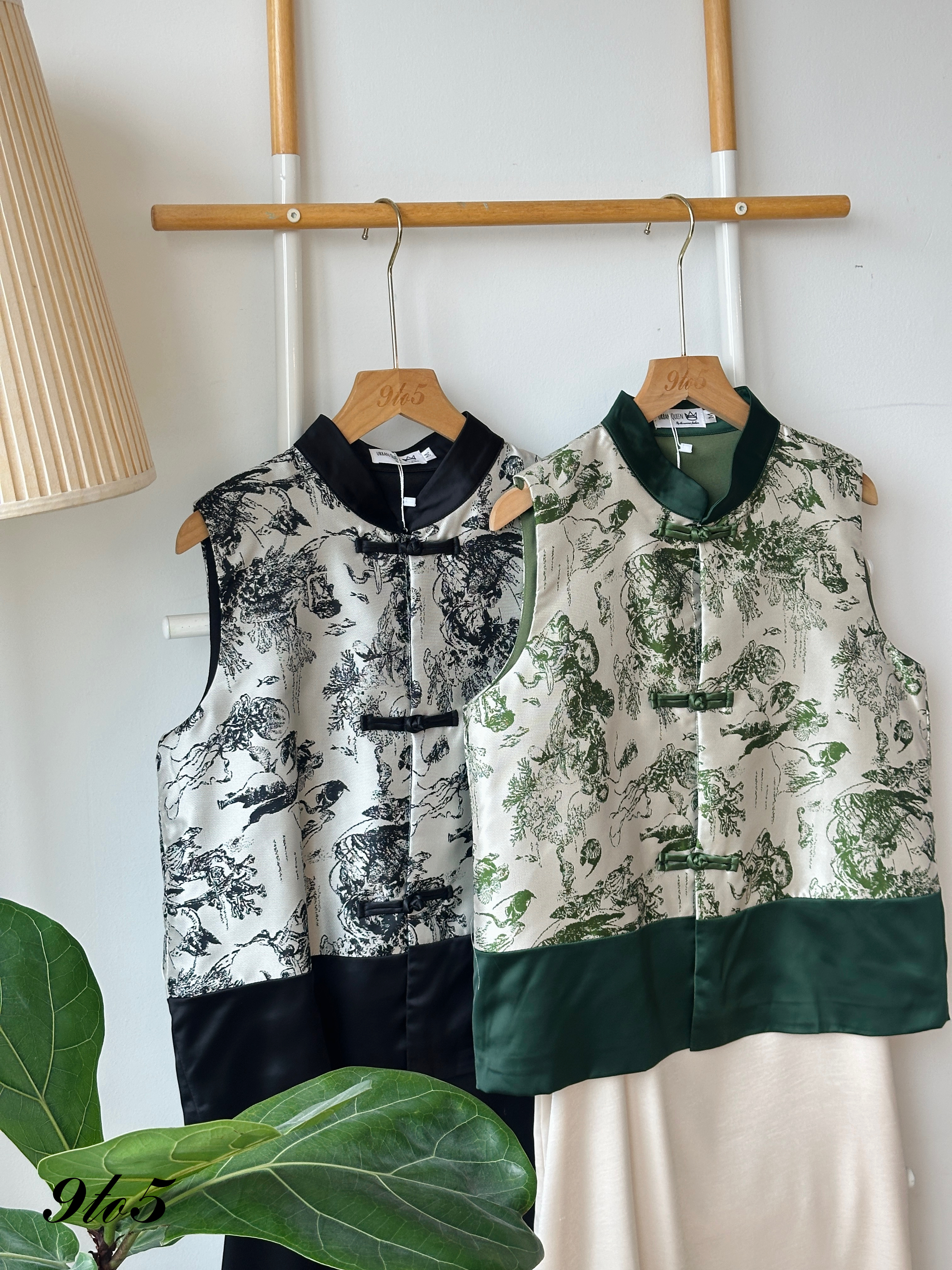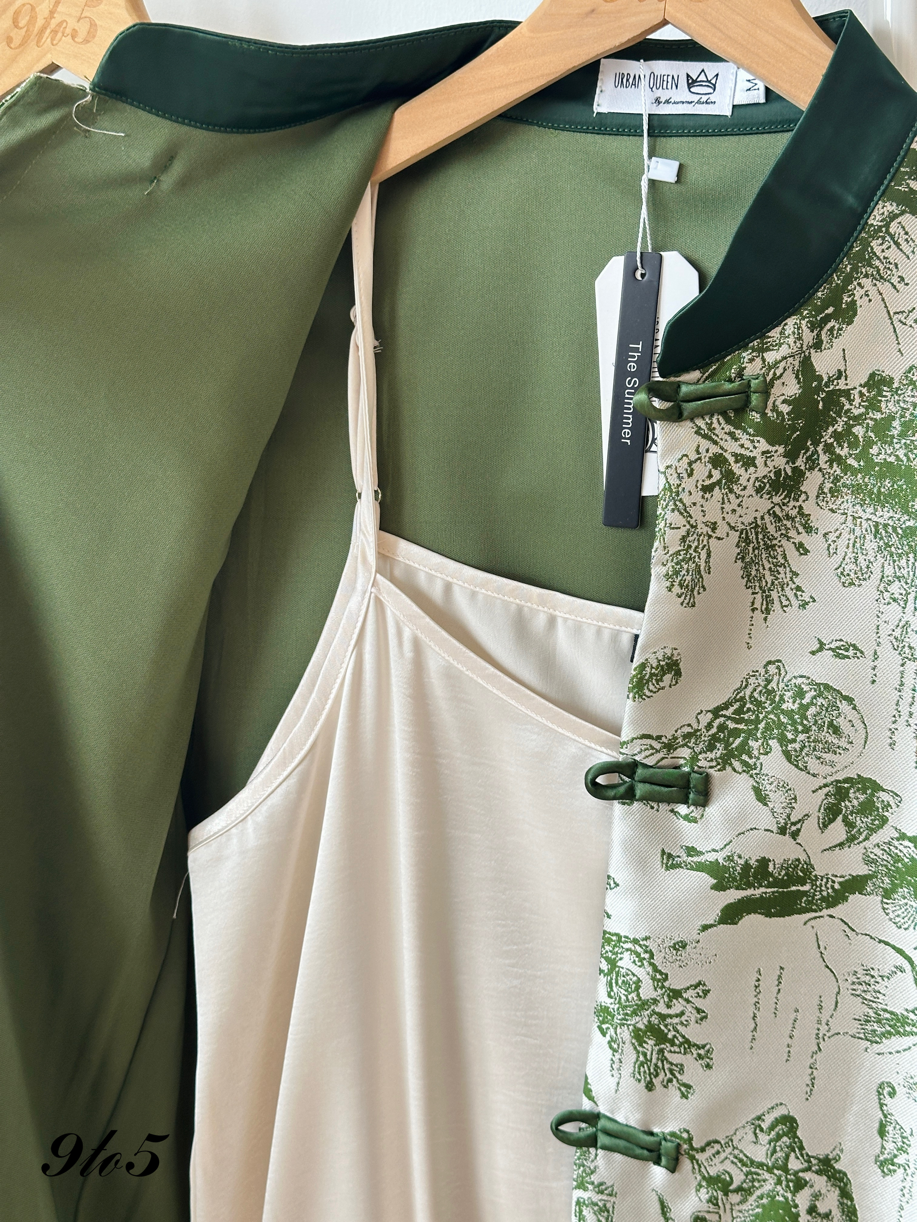 D2284 Cheongsam Vest with Dress Matching Set - Black & Green