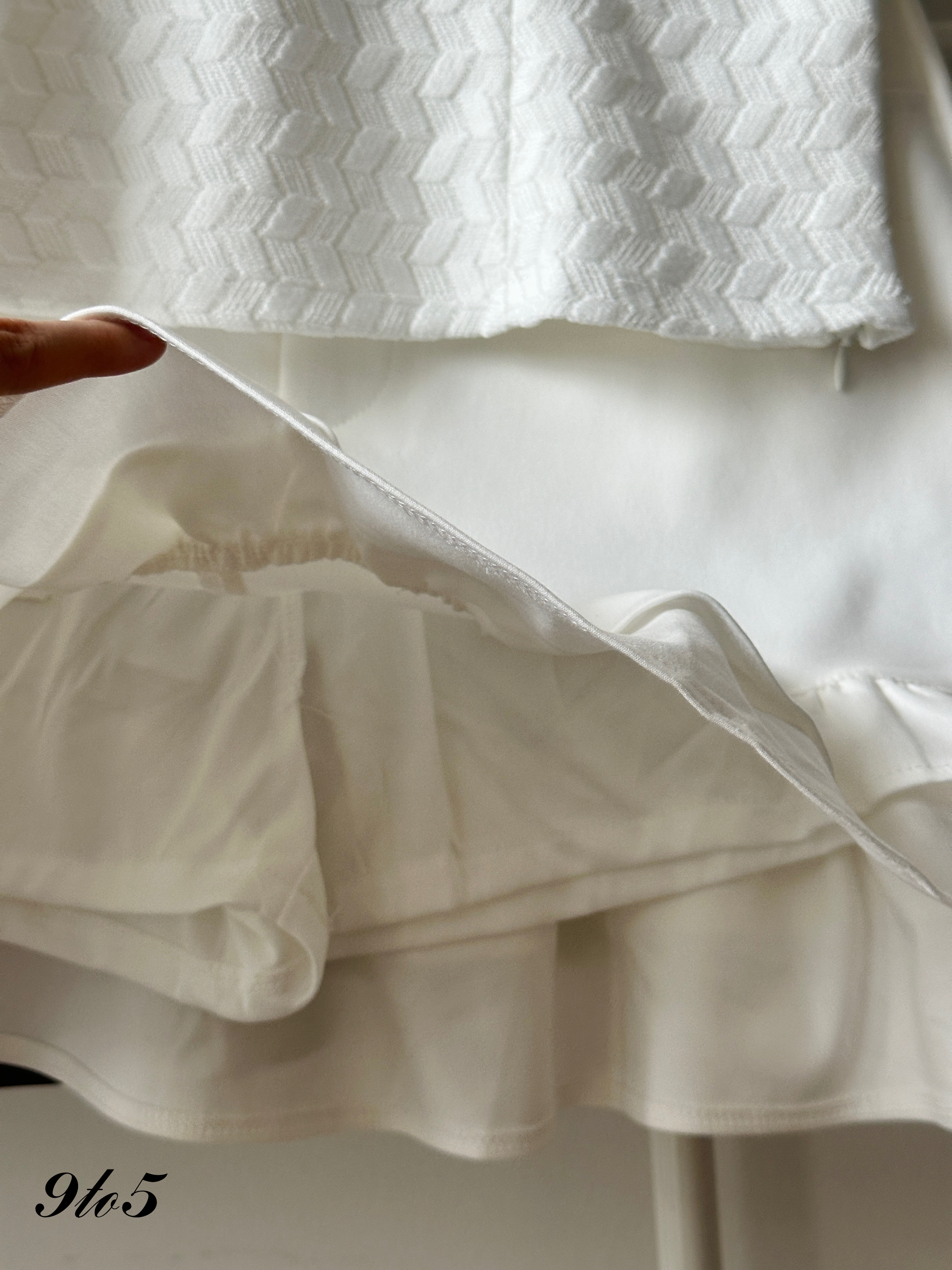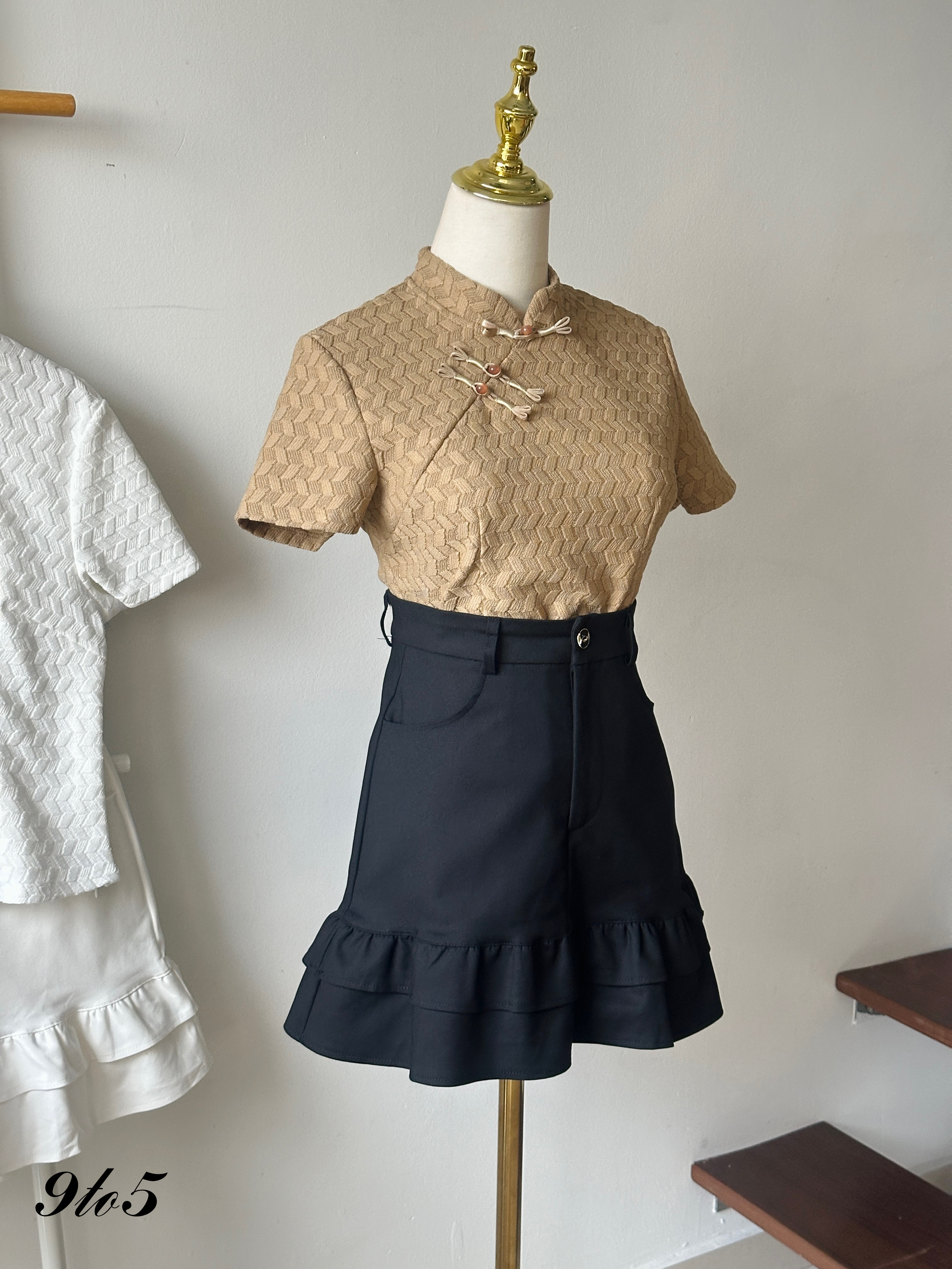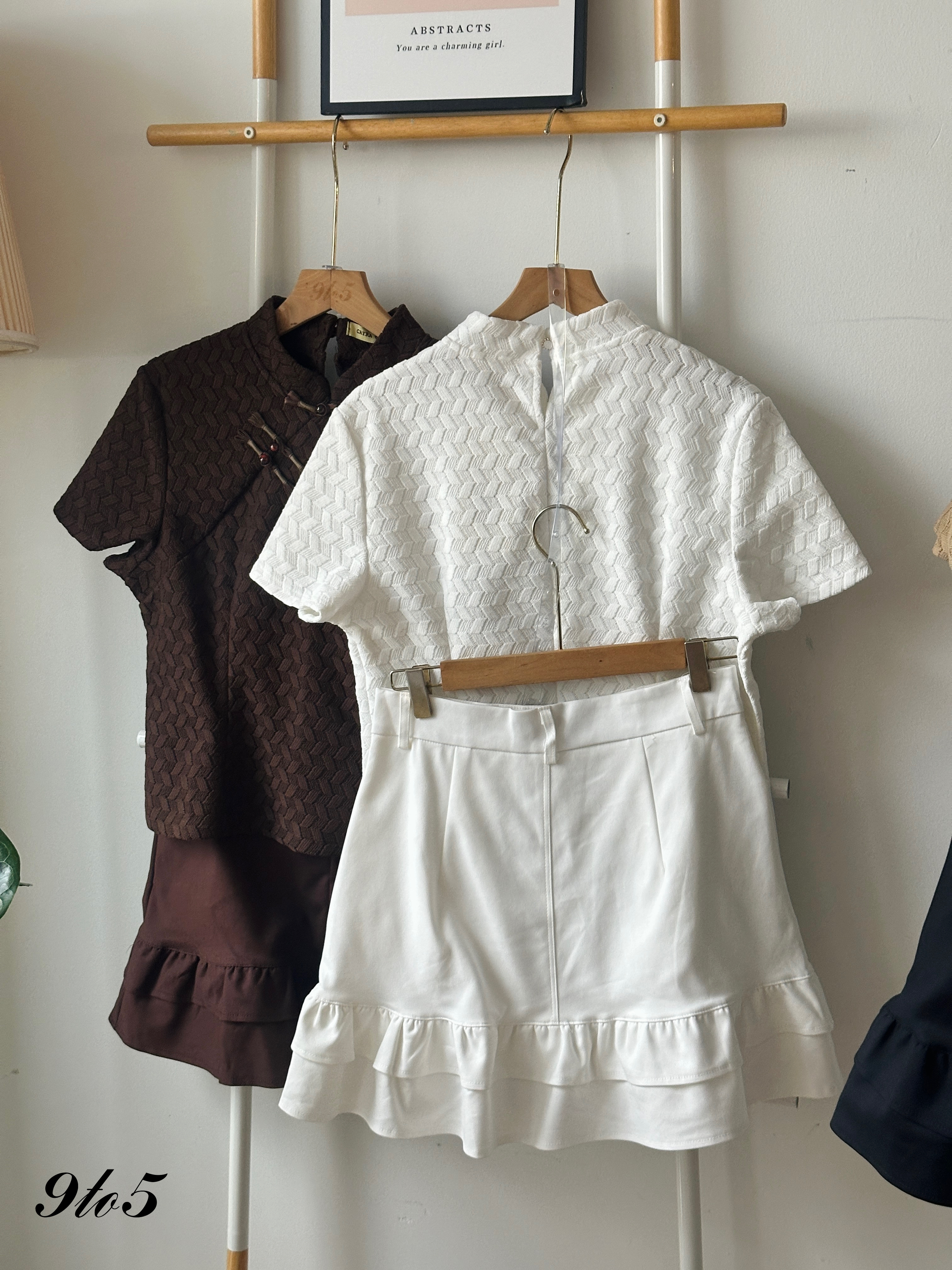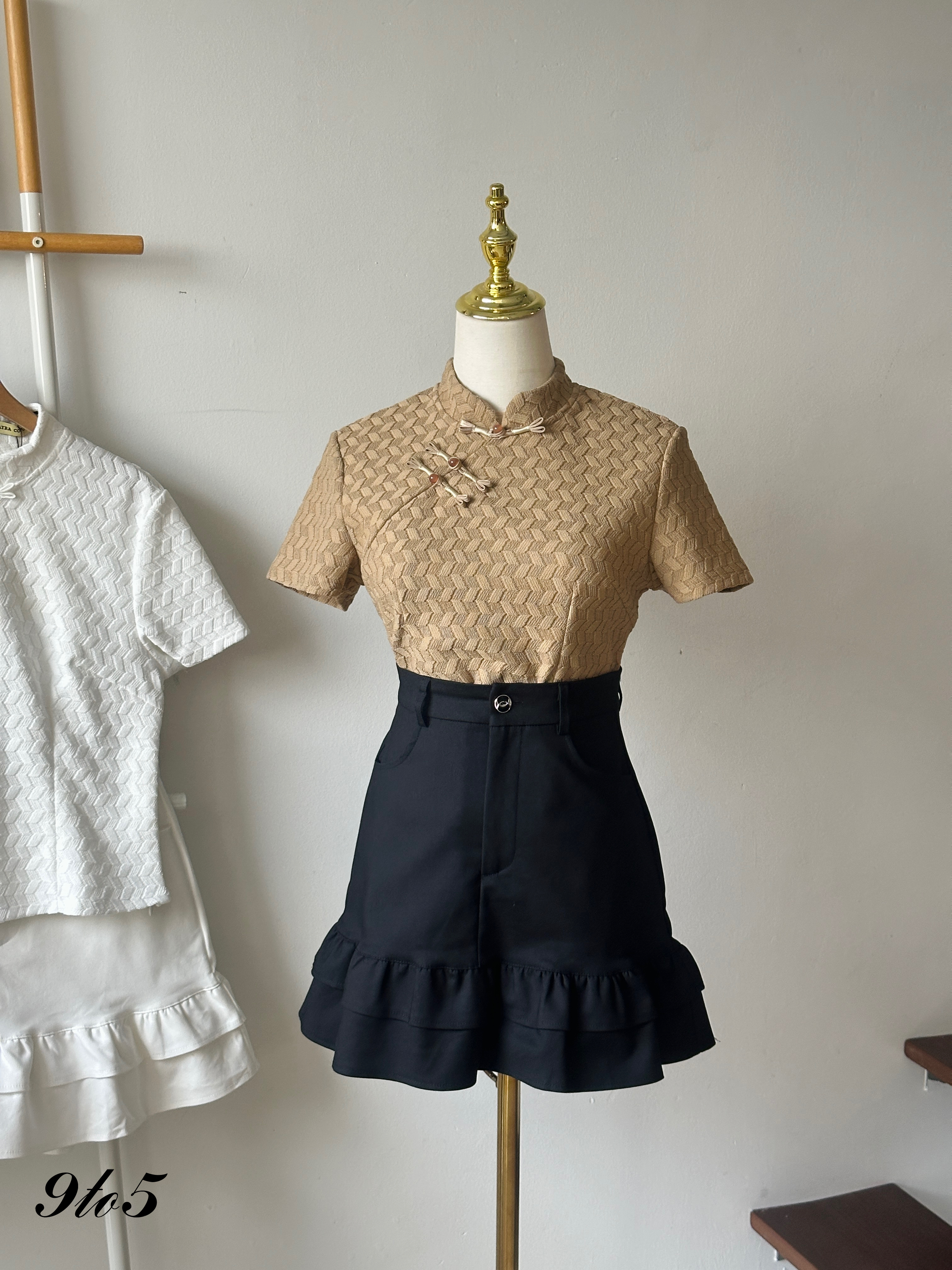 • Top made of knit material; Skirt made of cotton material