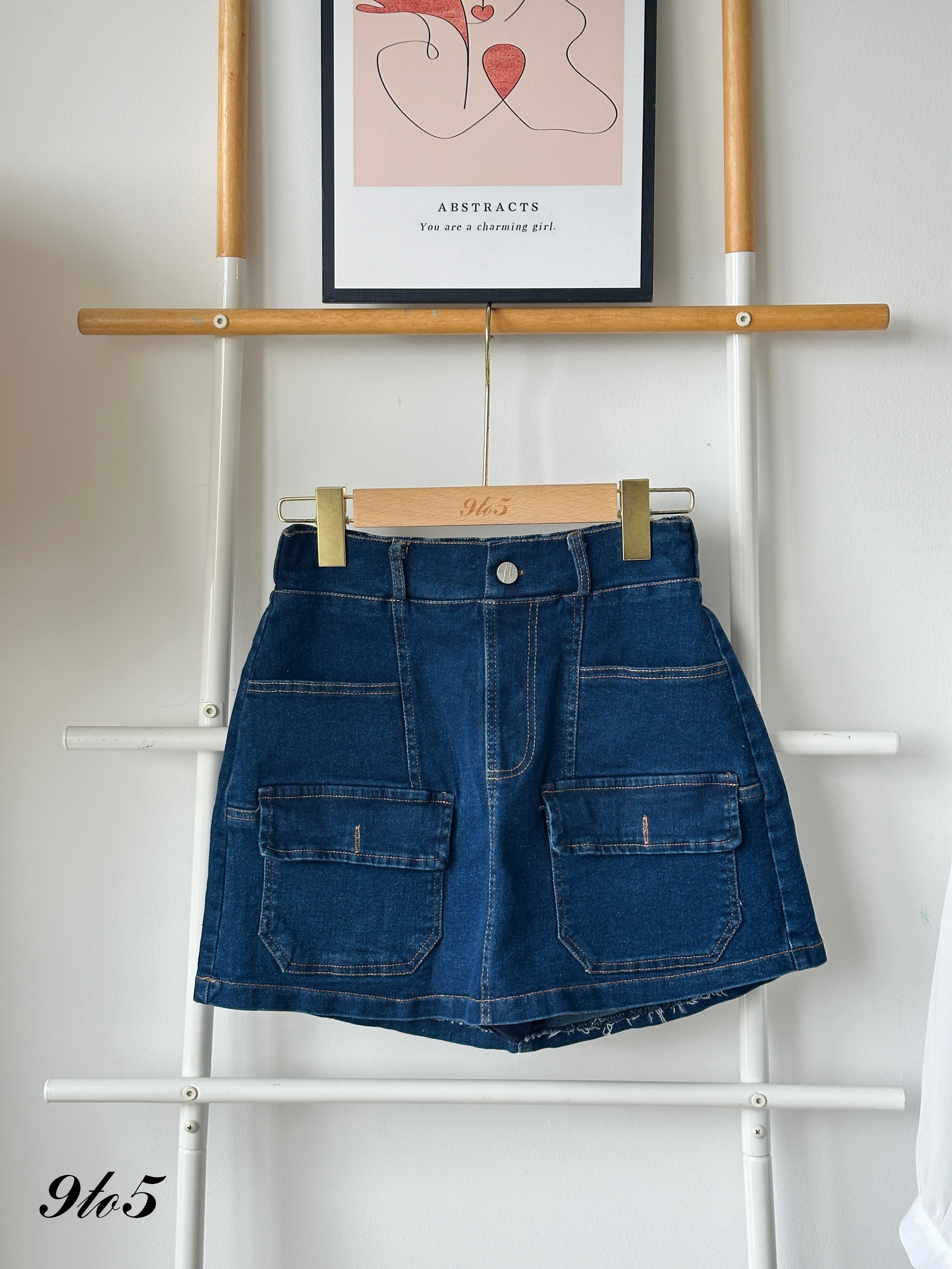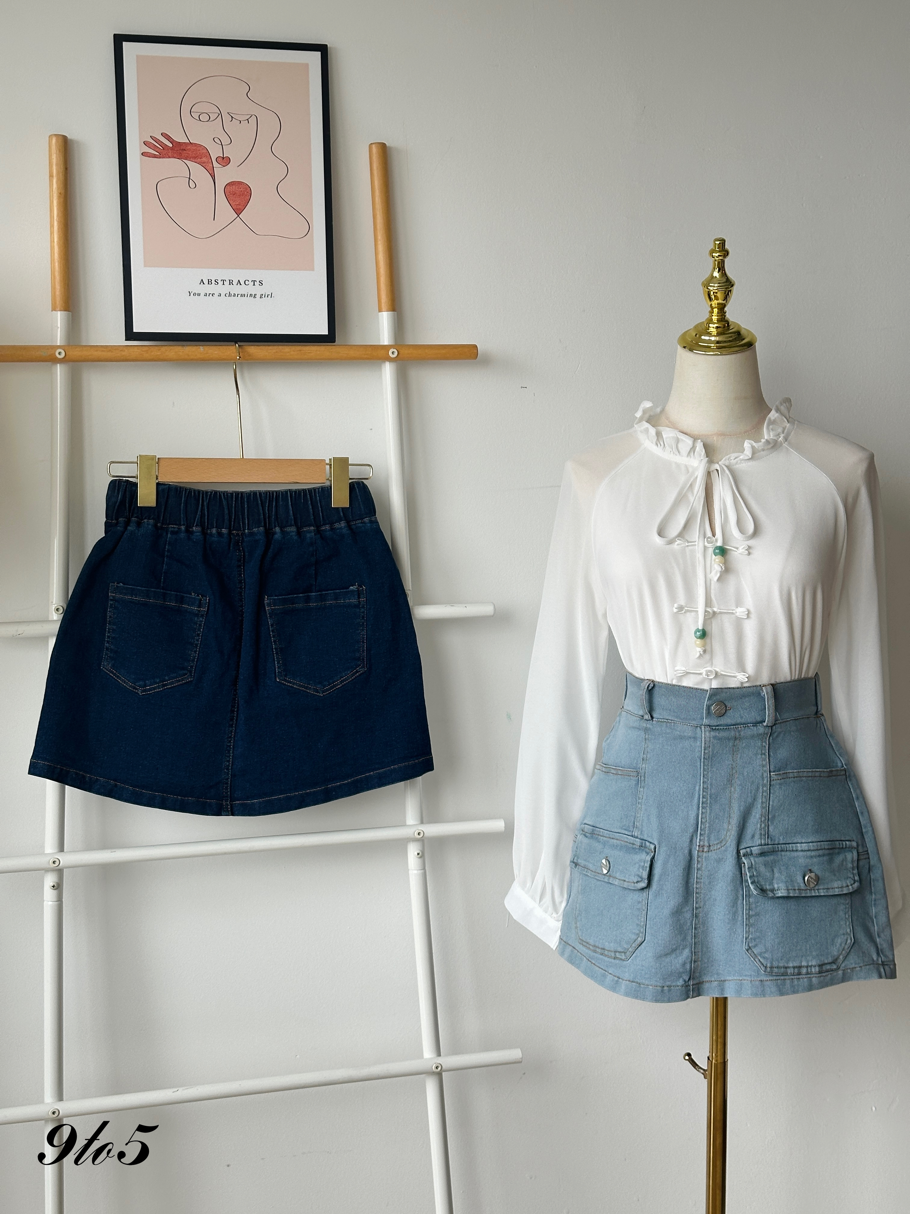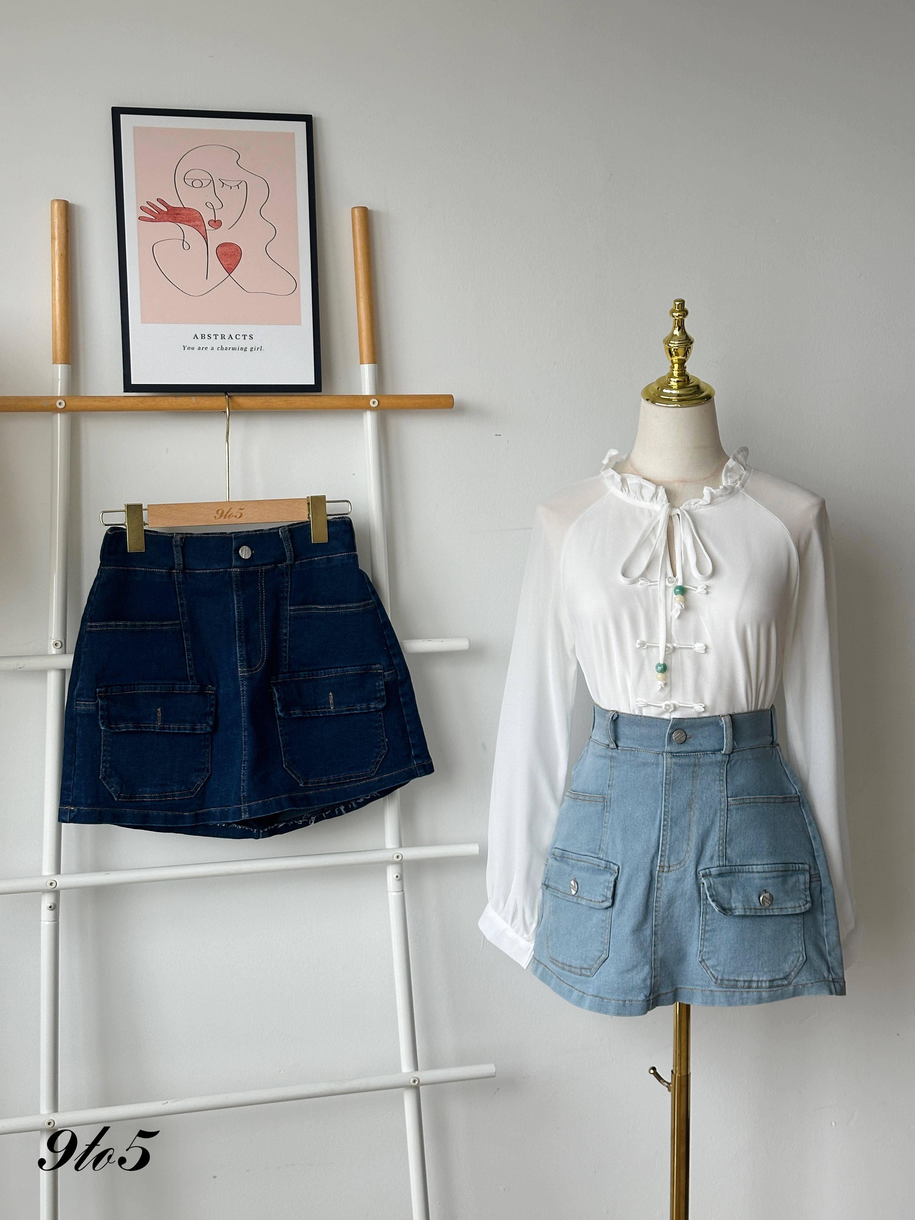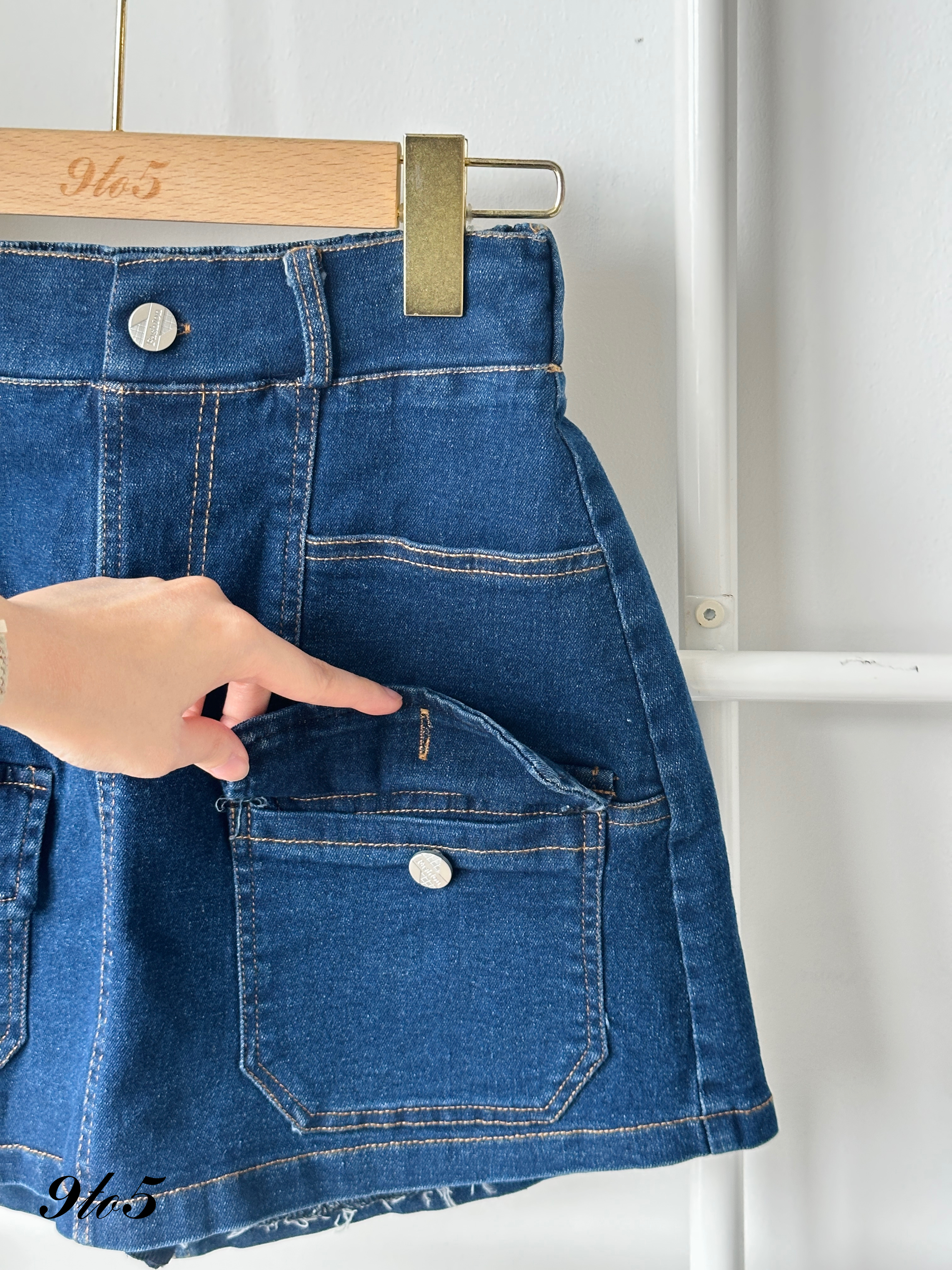 S1743 Denim Short Skirt - Dark Blue & Light Blue
